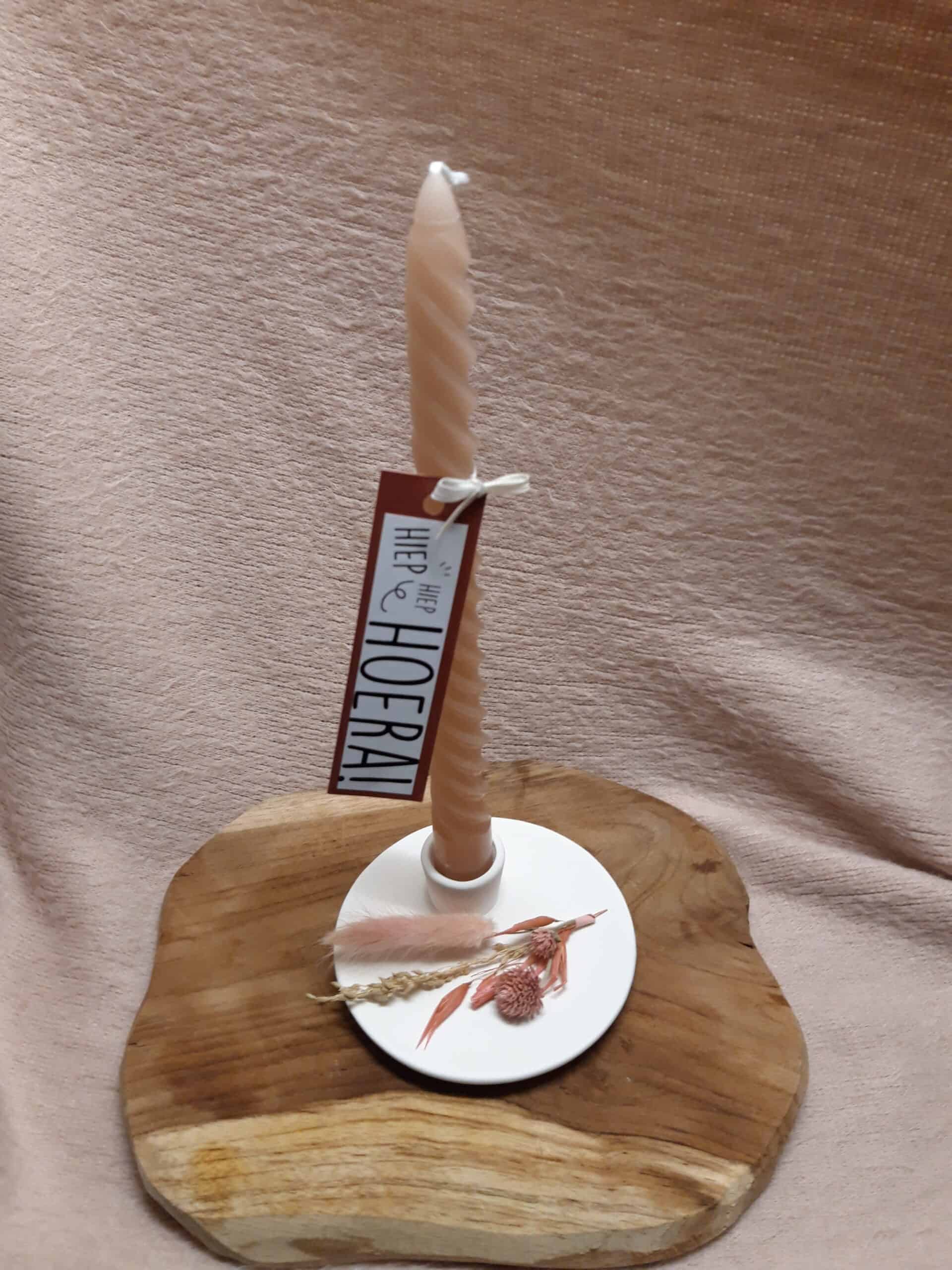 Kandelaar met Swirl kaars – Hoera!