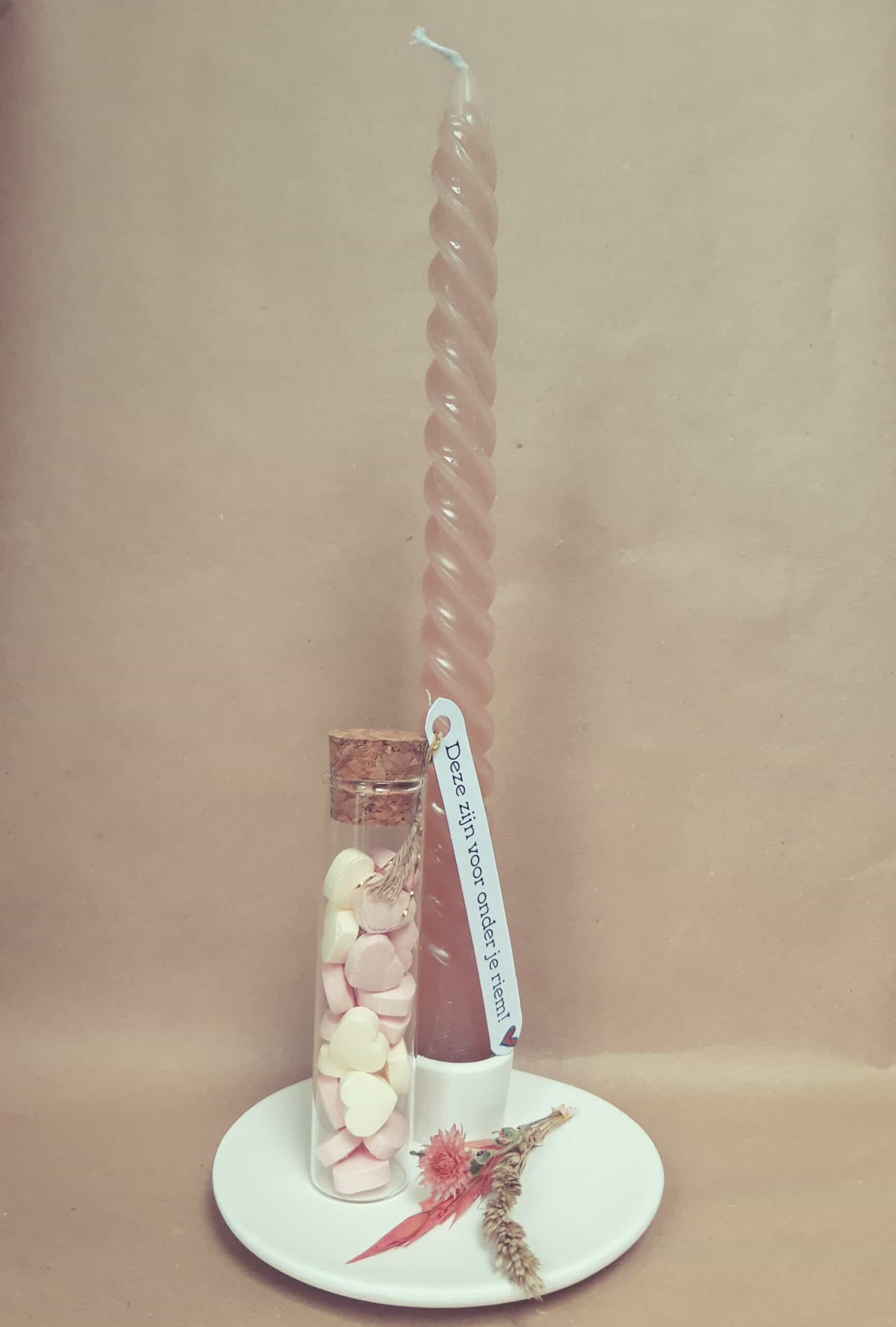 Kandelaar met Swirl kaars – Hart onder de riem