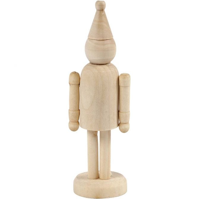 Figuur van licht hout met fijne details op voet, zodat de figuur kan staan. 13cm hoog.