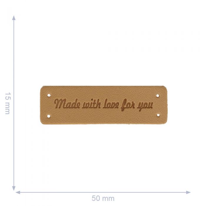 Zelfgemaakte creaties worden gepersonaliseerd met dit leren label. Ze zijn geschikt voor gebreide, gehaakte of genaaide kleding, tassen, etuis en nog veel meer! De tekst is in donker reliëf in het leer gezet en er zijn teksten zoals ‘made by granny’, ‘made by mama’, ‘made with love’ en ‘made with love for you’. De labels zijn voorzien van gaten en kunnen daarom gemakkelijk en snel met de hand worden opgenaaid.